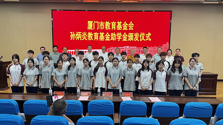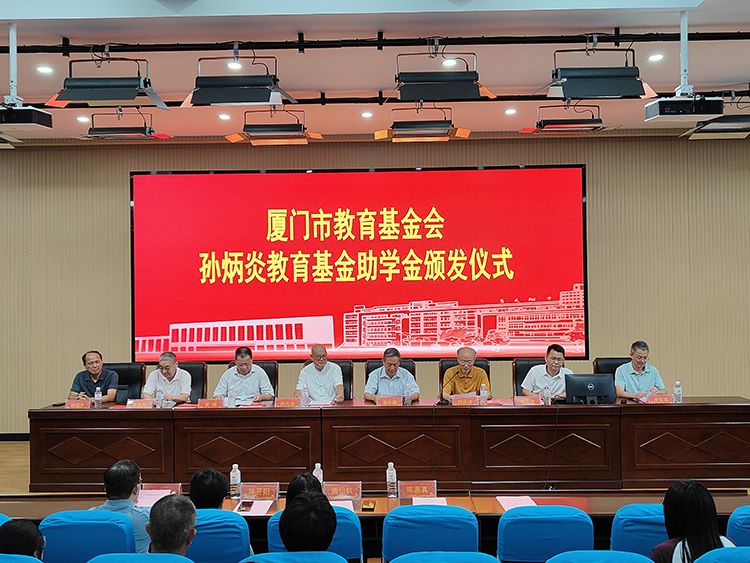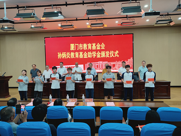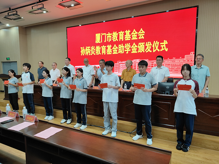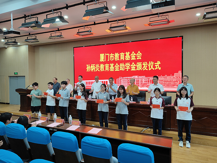 廈門市教育基金會(huì)法人潘世建講話,他深深感恩陳嘉庚及孫炳炎先生的愛國教育情操,寄語受助學(xué)生“夢在前面,路在腳下,鍥爾不舍,馳而不息”,希望大家能朝前看,努力成為社會(huì)的棟梁。